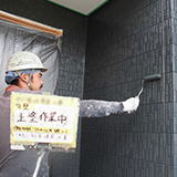 高圧洗浄で汚れを落とした外壁に、まずは下塗りという工程で、このあとの塗料の保護と密着性の向上を行います。