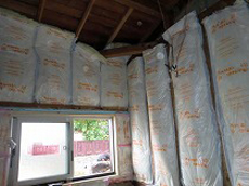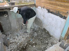| まず風呂の天井、壁、床の順で 解体していきます。 | 水給湯管、排水管の配管後 職人が丁寧にコンクリートを打設していきます。 | 外壁に面している部分には 隙間なく断熱材を貼っていきます。 |