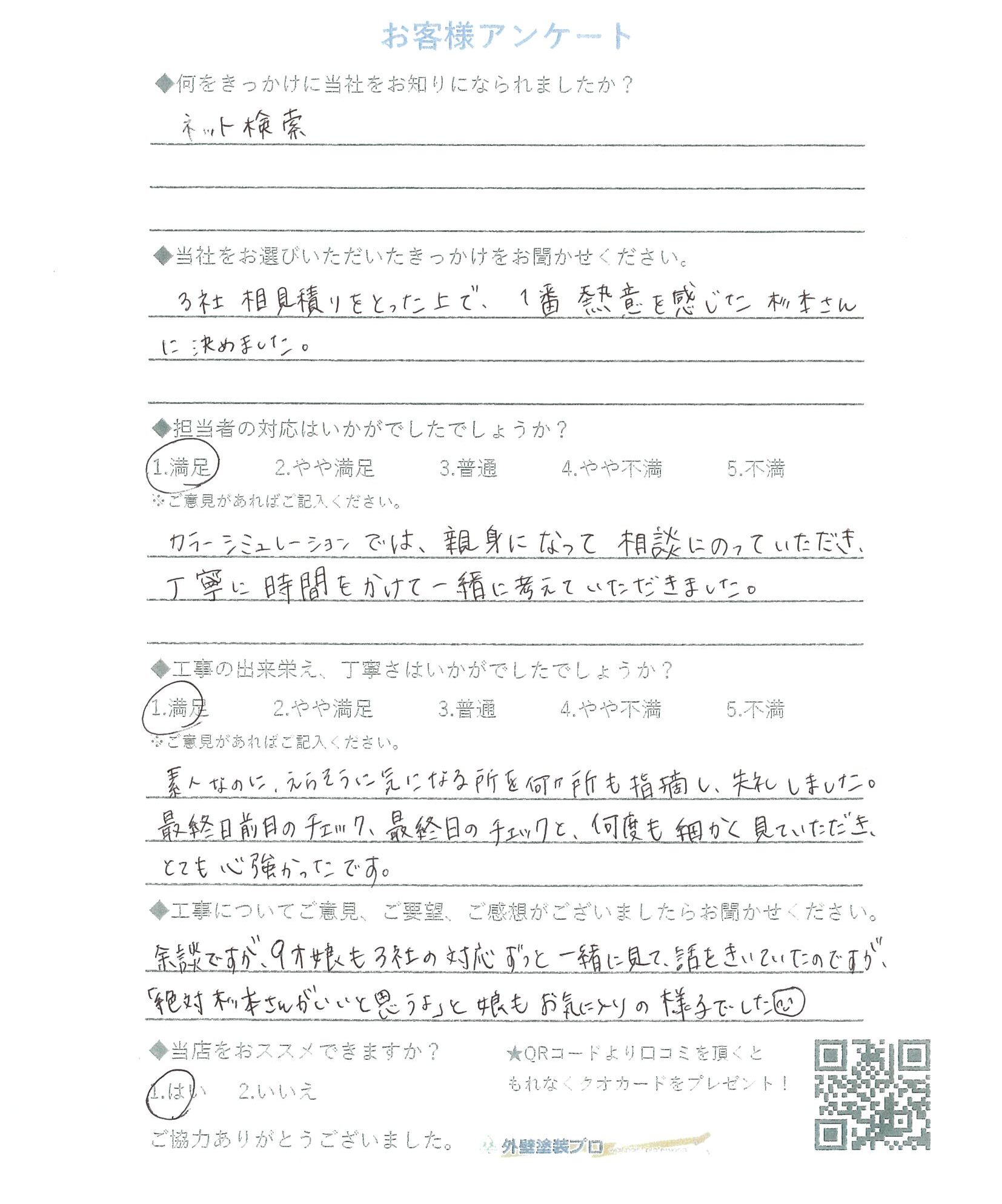 3社相見積りをとった上で、1番熱意を感じた杉本さんに決めました。