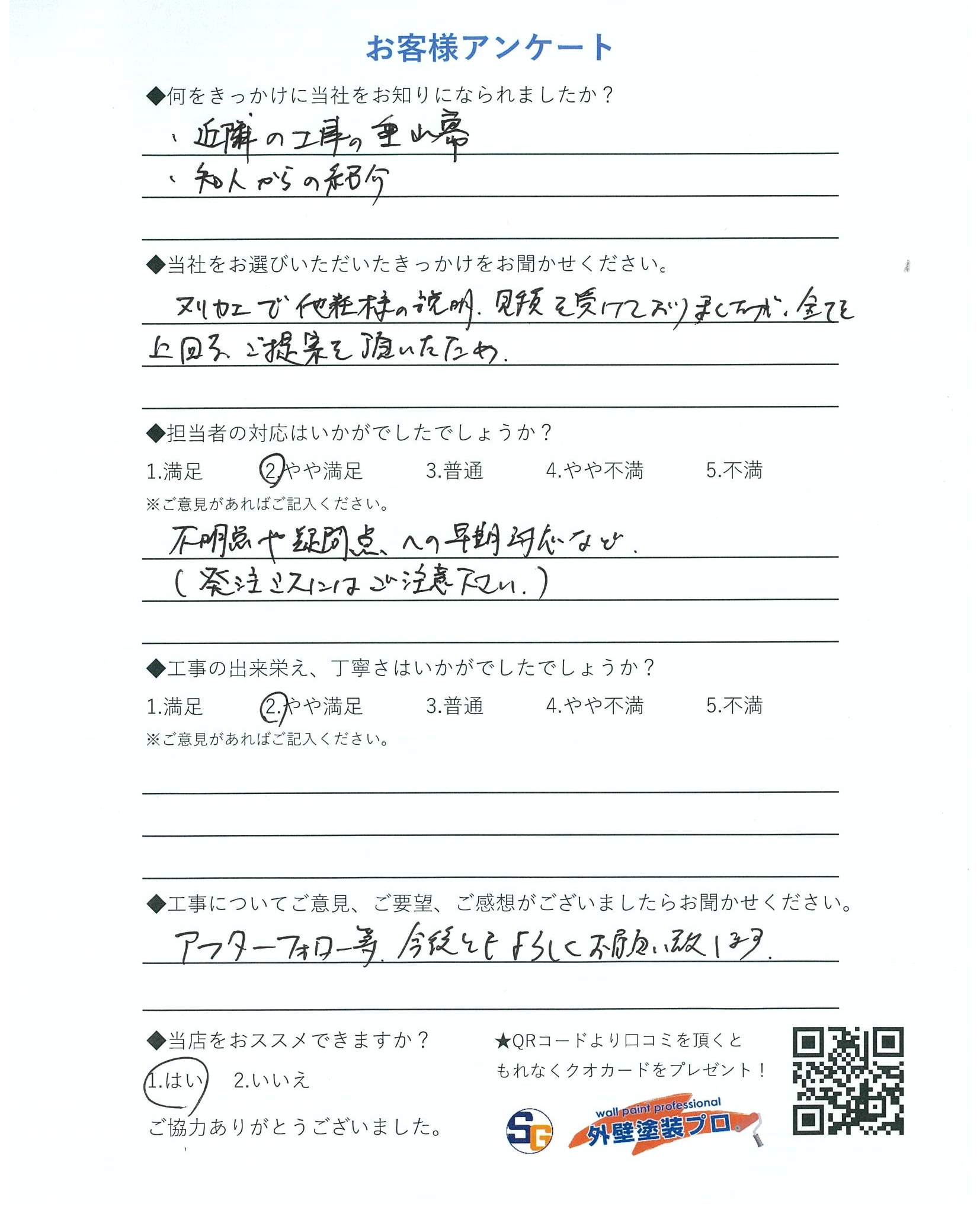 ヌリカエで他社様の説明・見積もりを受けておりましたが、全てを上回るご提案をいただいたため