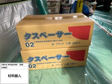 屋根は下塗りを塗装後、タスペーサーを取り付けます。タスペーサーを取り付けることで屋根の通気、排水ができ、屋根の内部に水が溜まって雨漏りが発生することを防げます。