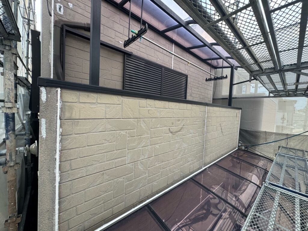 クラック補修等してから下塗り用塗料(シーラー)と中塗りを塗装後、仕上げに上塗りを塗装し3回塗りを行いました。