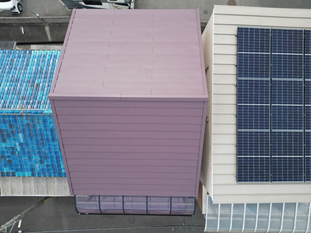 その上からガルバリウム鋼板を上貼りし屋根を仕上げていきます。