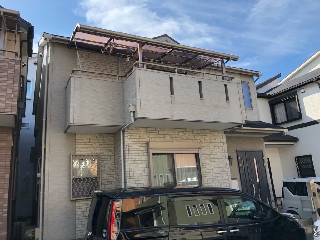 下地処理としてまずシーラーでしっかり密着性を高め、その後に中塗りを施し、最後に上塗りで仕上げる3回塗り施工を行いました。