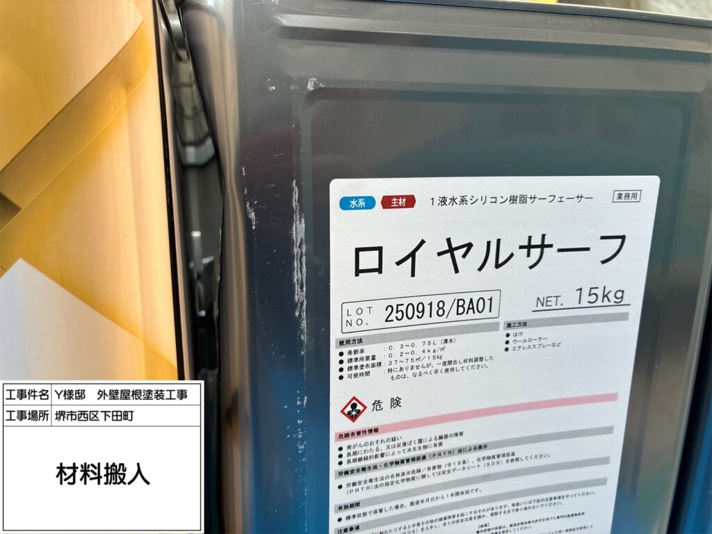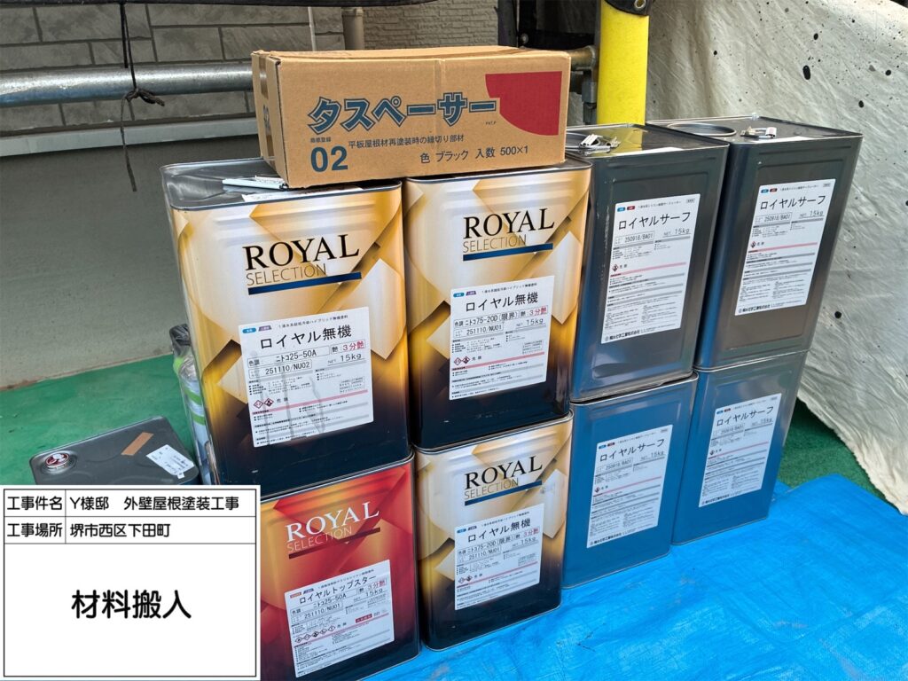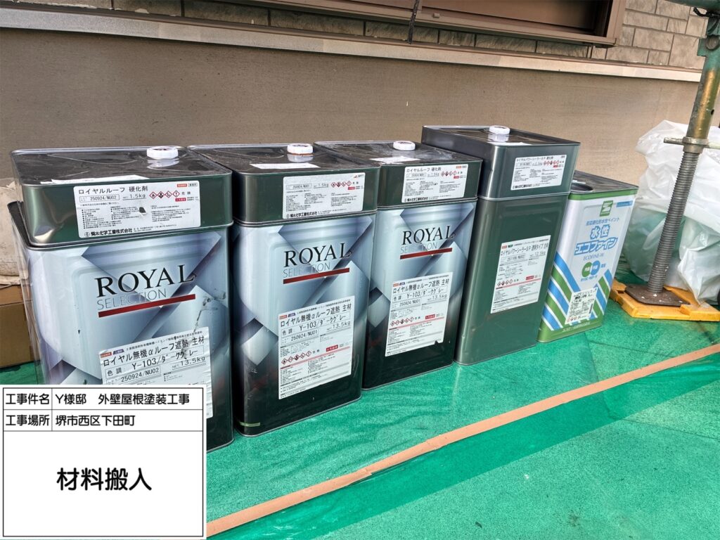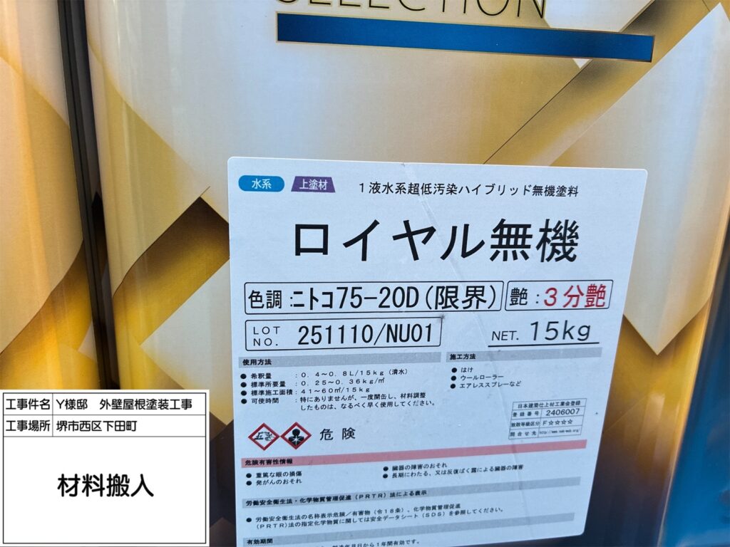 今回使用したロイヤル無機αルーフ遮熱は、無機成分による優れた耐久性でチョーキングや色あせが起きにくく、長期間美観を維持できます。また、遮熱効果により外壁表面温度の上昇を抑えるため、室内環境の快適性向上や省エネにも寄与します。高耐久・高遮熱の両方を備えた、非常にコストパフォーマンスが高い塗料です。