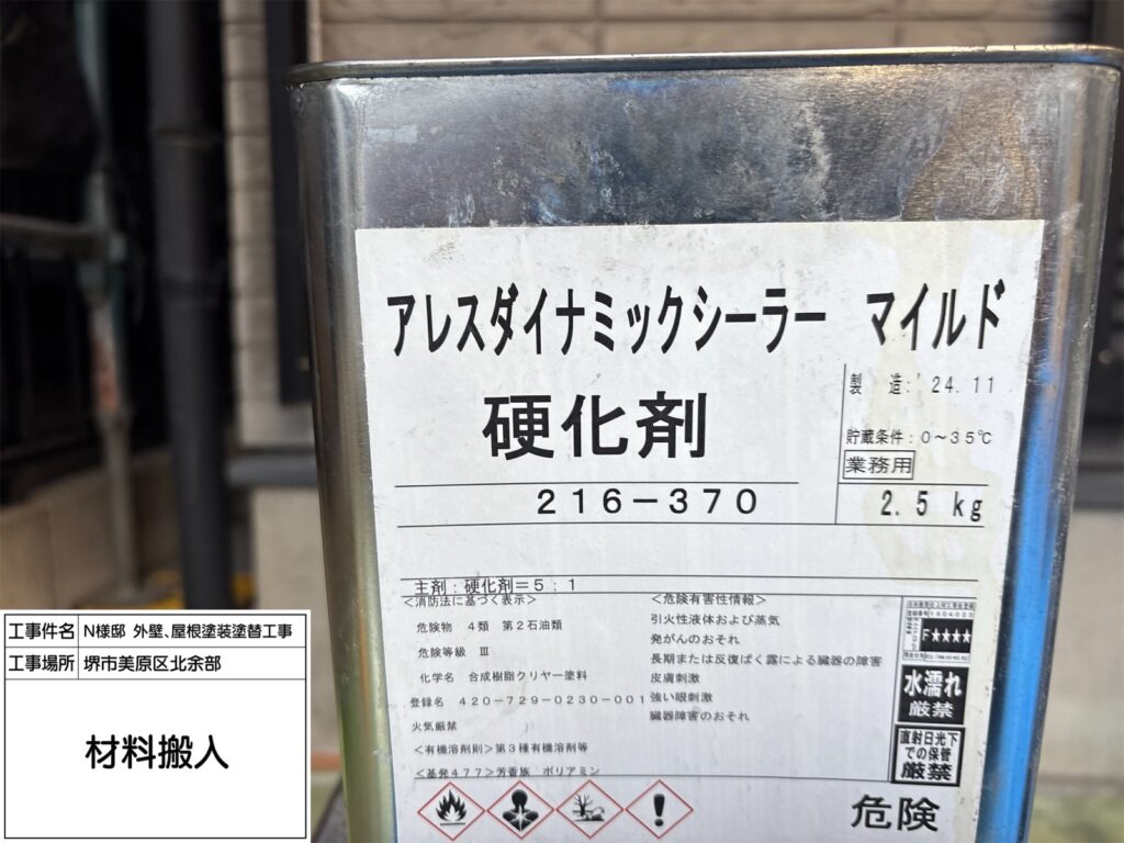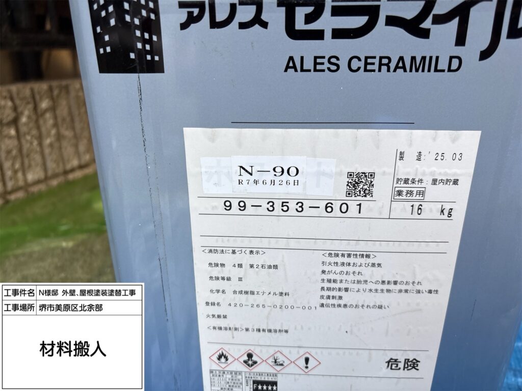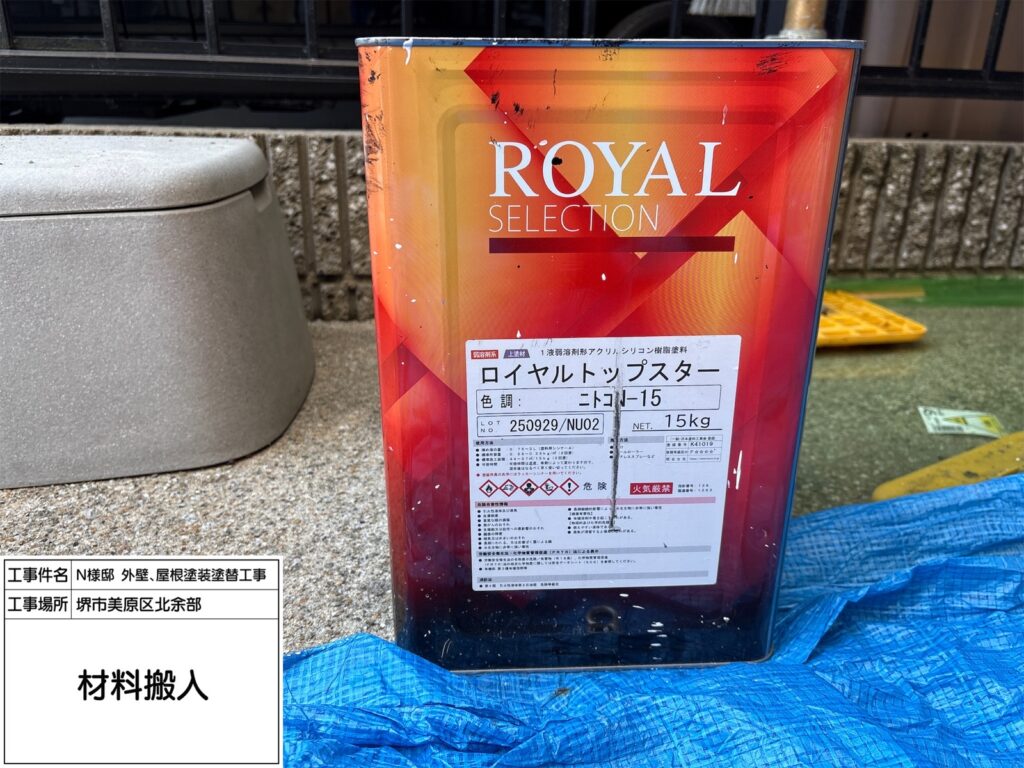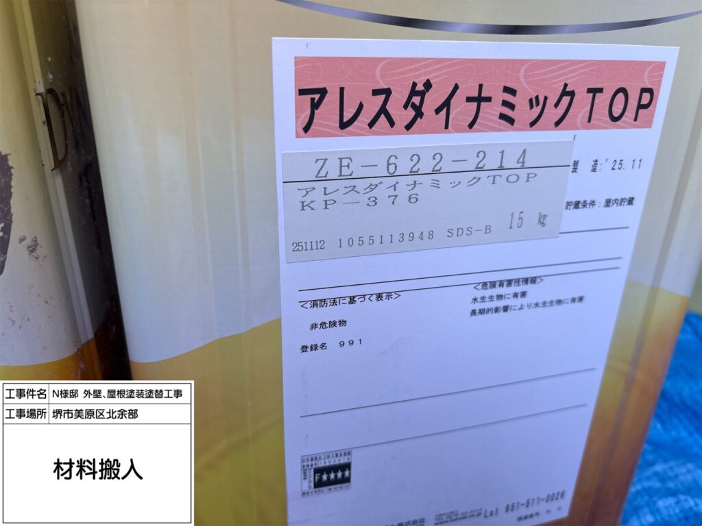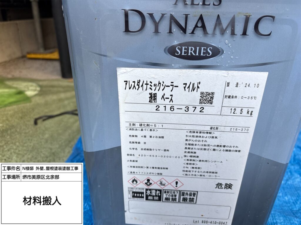 屋根にご提案したダイナミックルーフは高い耐候性を持ち、紫外線や雨風を長期間しっかり防ぐ屋根用塗料です。ネオブラックは落ち着いた濃色で、屋根全体を引き締め重厚感のある外観に仕上がります。優れた密着性で塗膜がはがれにくく、防水性も向上。色あせしにくいため、美しい仕上がりを長く保てるのも特長です。築年数が経った屋根の保護と美観維持に適しています。