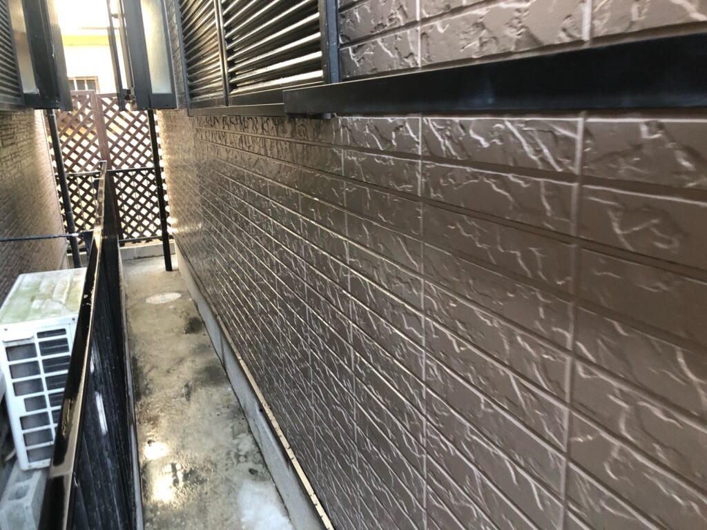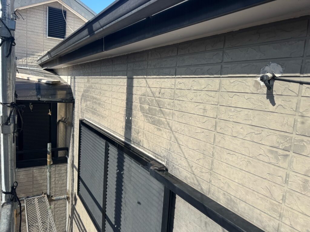 下地処理としてまずシーラーでしっかり密着性を高め、その後に中塗りを施し、最後に上塗りで仕上げる3回塗り施工を行いました。
